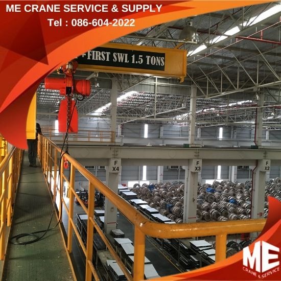 บริษัท เอ็มอีเครน เซอร์วิส แอนด์ ซัพพลาย จำกัด รับติดตั้ง เครนรางเดี่ยว ชลบุรี (Single girder crane) เป็น เครนเหนือศีรษะ แบบคานเดี่ยว รับติดตั้ง เครนไฟฟ้ารางเดี่ยว ใช้ยกวัตถุ 6 ทิศทาง เลื่อน หน้า, หลัง, ซ้าย, ขวา, ยกขึ้นและวางลง สำหรับโรงงานอุตสาหกรรม ติดตั้งได้ภายในอาคารและภายนอกอาคาร ติดตั้งเครนไฟฟ้า รอกโซ่ไฟฟ้า รอกสลิงไฟฟ้า ชลบุรี ระยอง